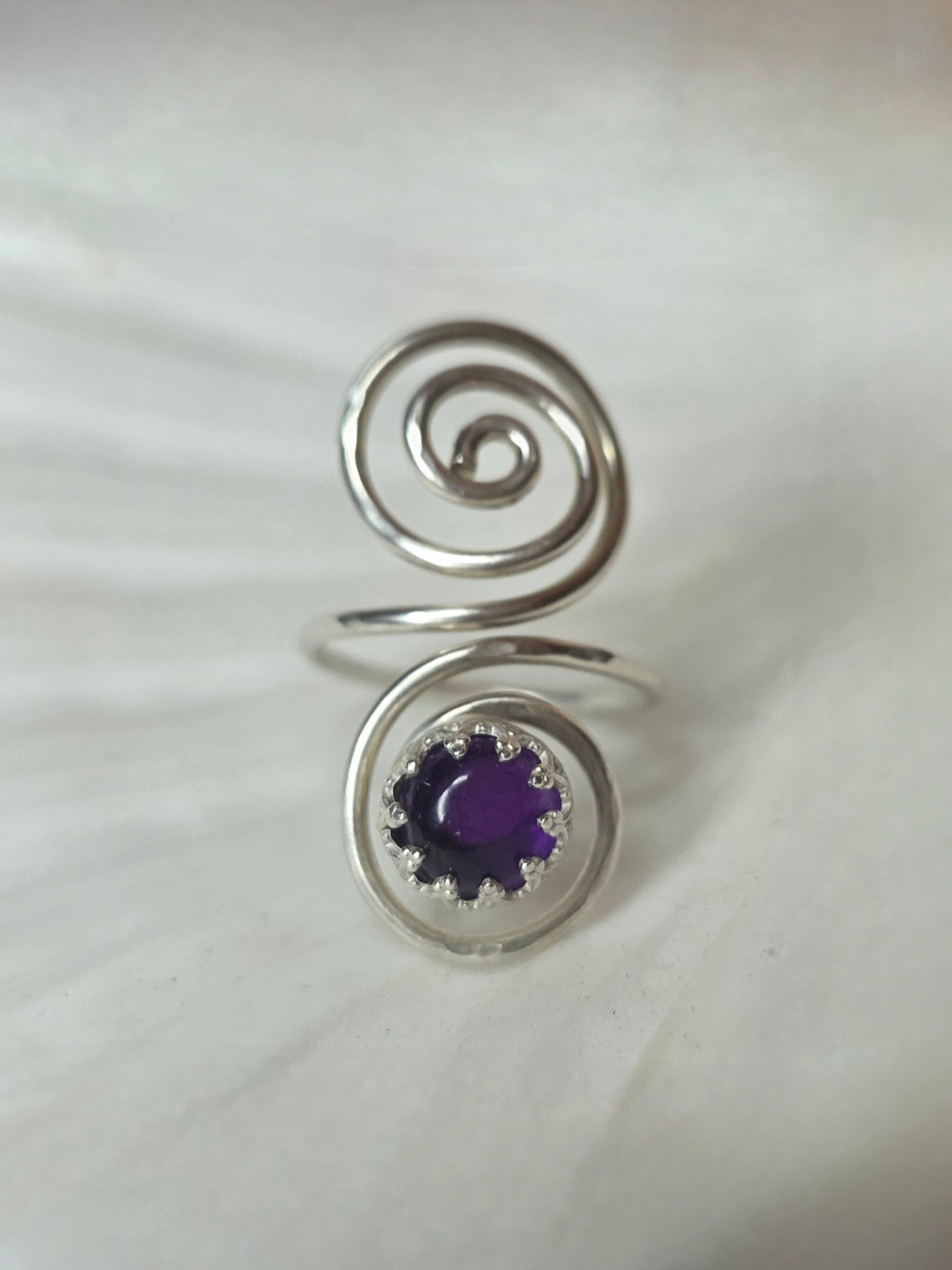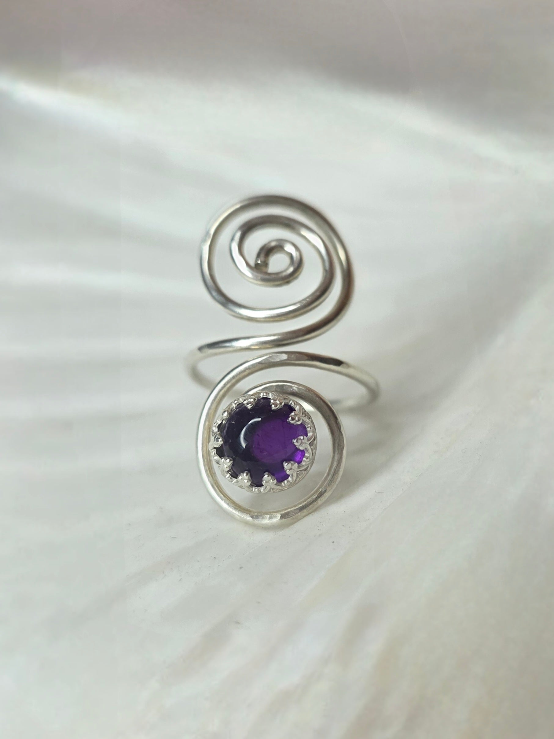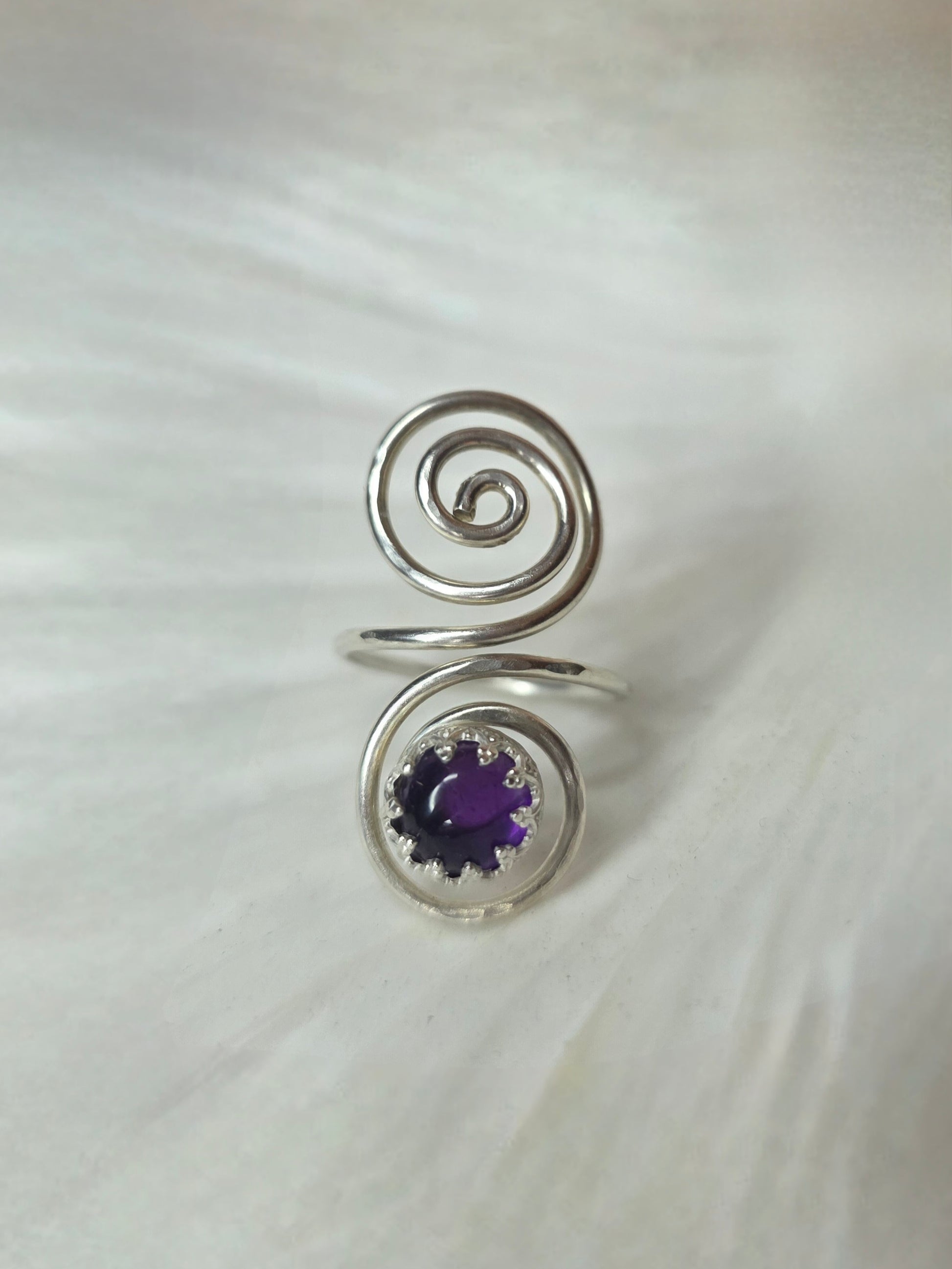 SPIRAL — Unikatni Srebrni Prsten s Ametistom