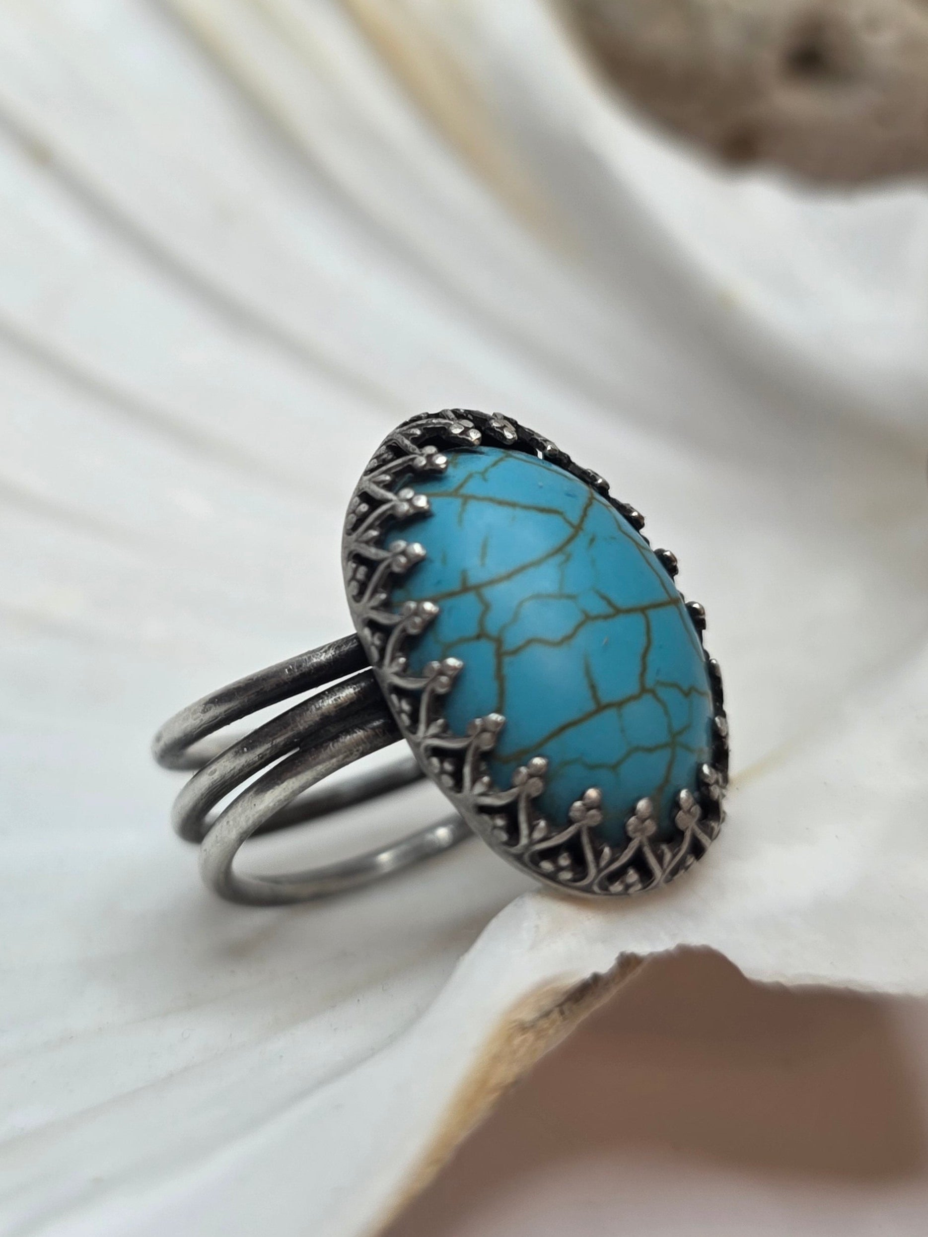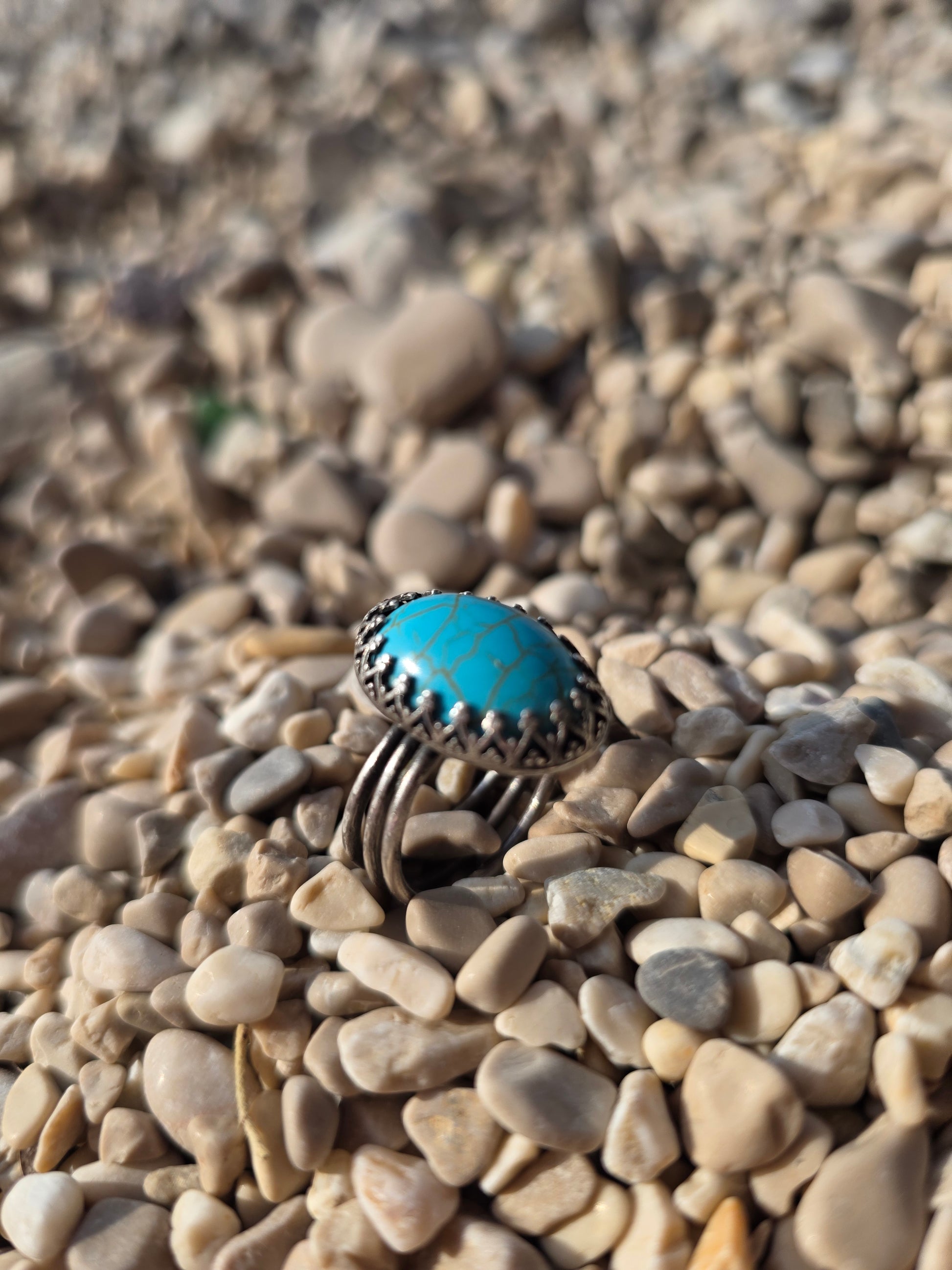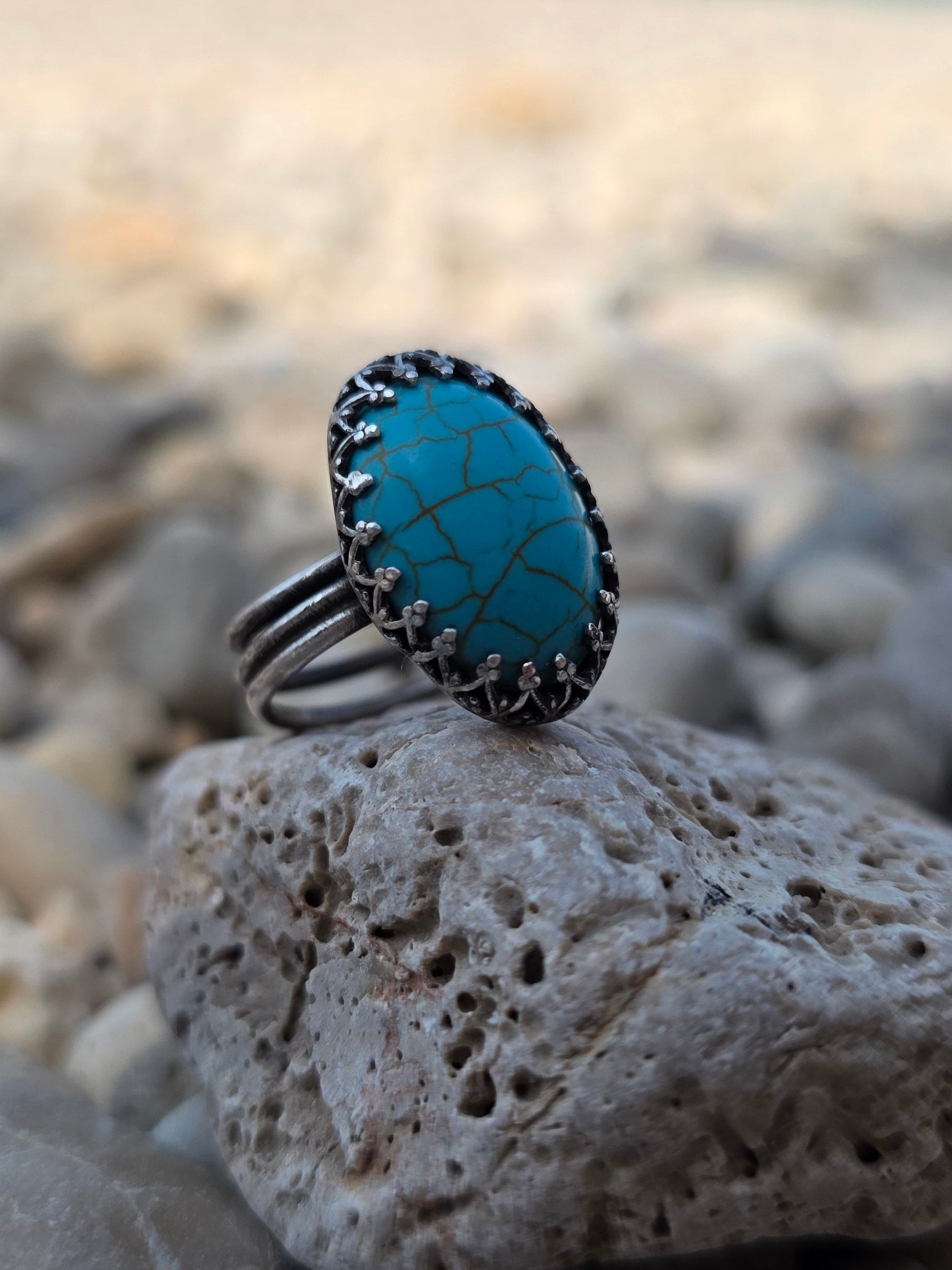 Prsten koji na prvu privuče pogled svojom nevjerojatnom nijansom tirkiza — živom, čistom i slobodnom.
