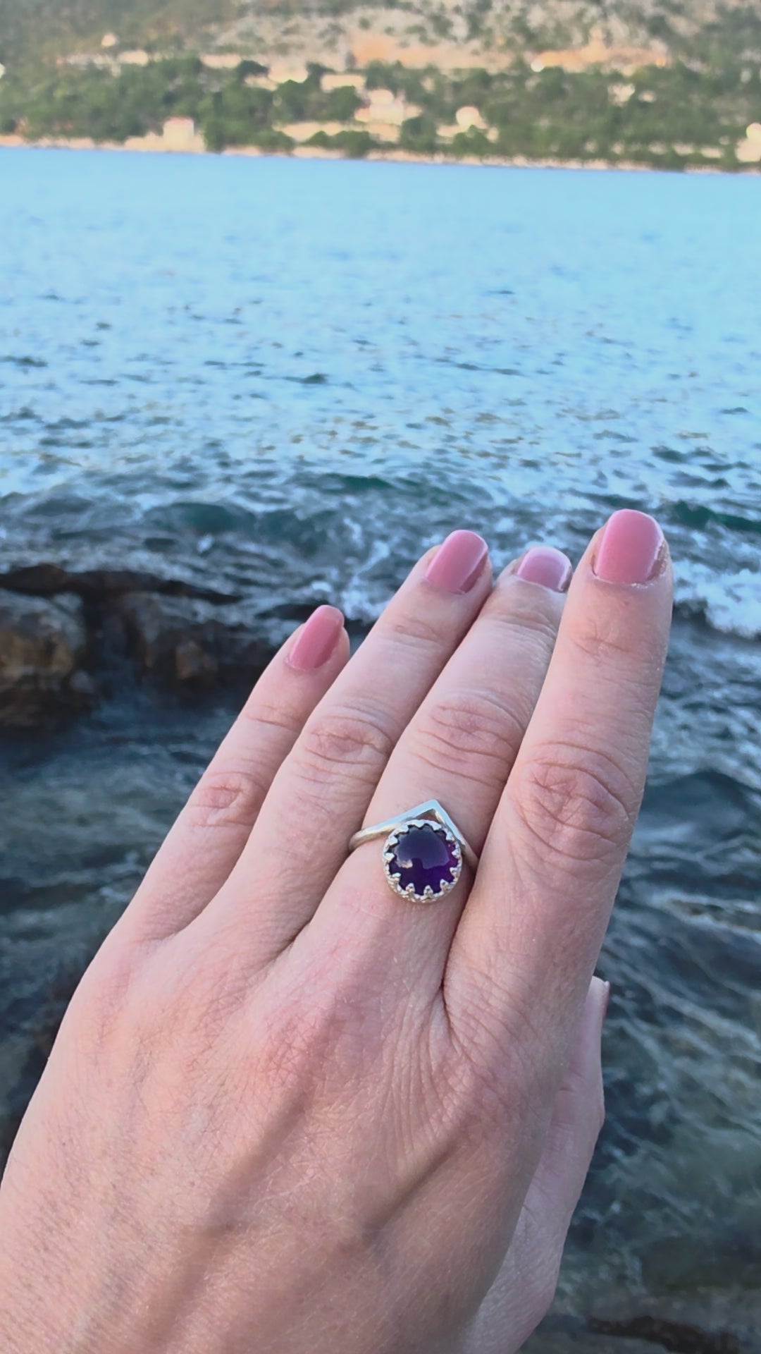 U ovom prstenu, ametist nosi priču o povratku sebi. O onom trenutku kad prestaneš tražiti odgovore izvana i počneš ih čuti u sebi. Nije glasna priča, više je kao echo koji te podsjeti tko si kad zaboraviš.