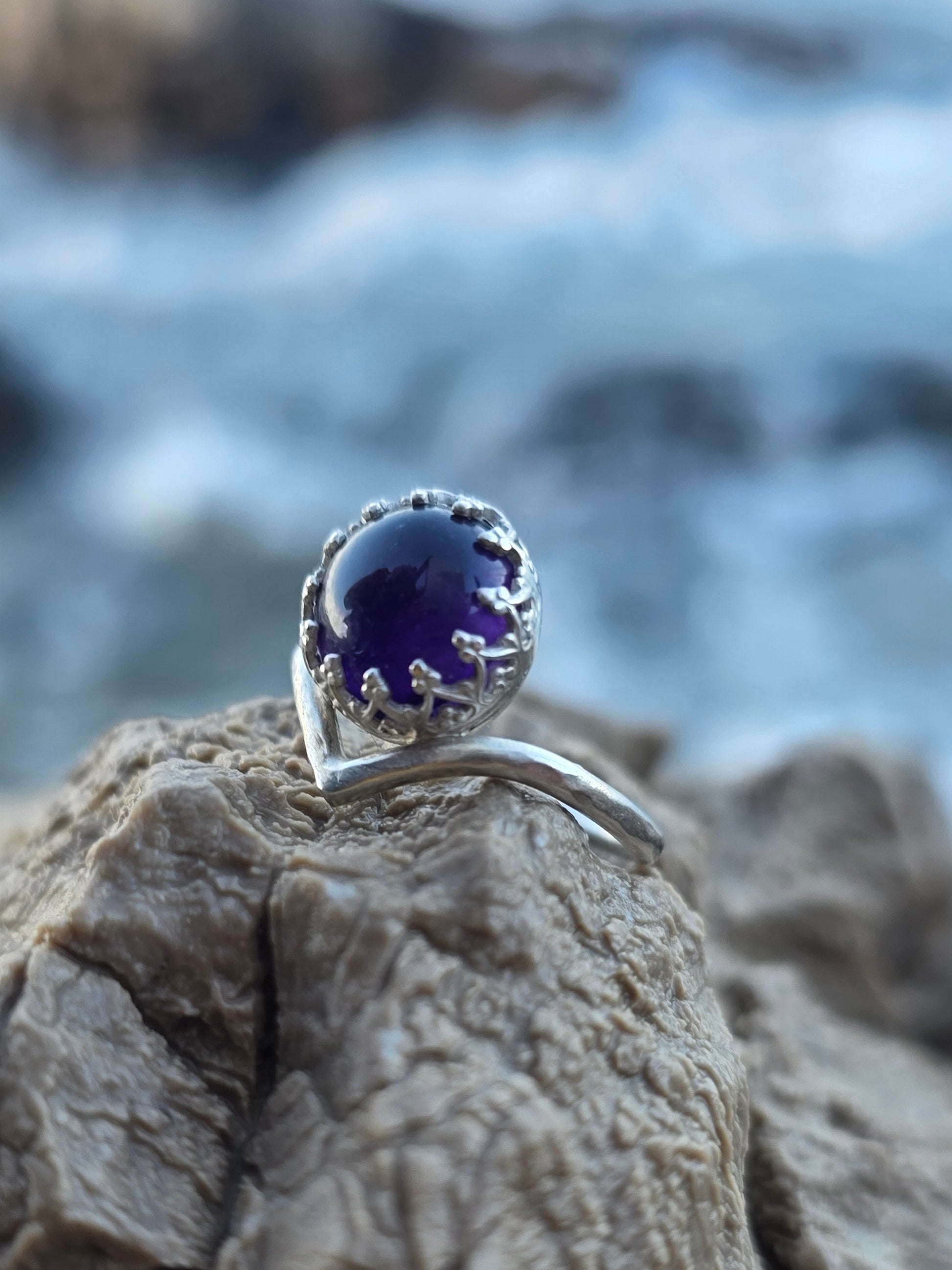 VIOLET ECHO — Unikatni Srebrni Prsten s Ametistom